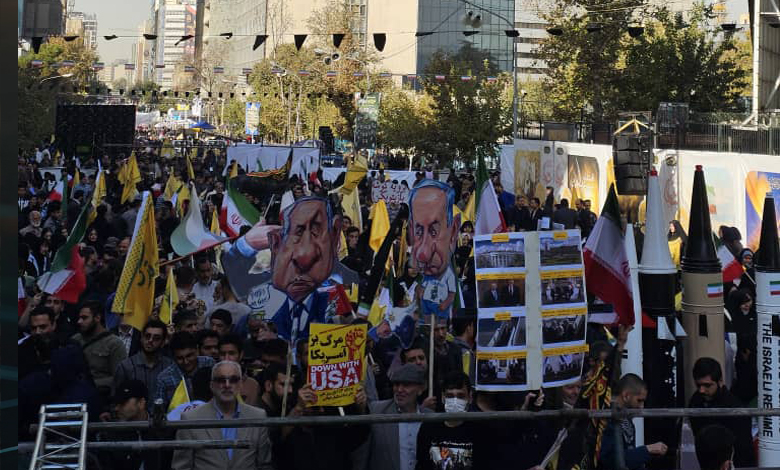 إقامة مراسم يوم المقاومة الوطنية ضد الاستكبار أمام السفارة الأمريكية السابقة في طهران