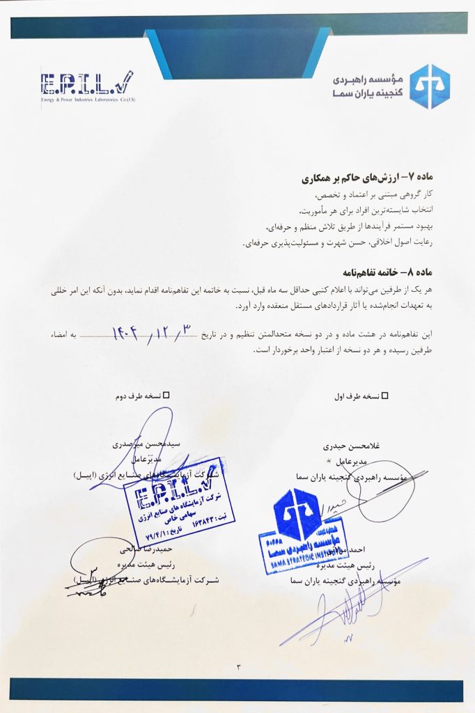 الإخبارية بأنه تم توقيع مذكرة تفاهم للتعاون المشترك بين «مؤسسة كنز ياران سما الاستراتيجية» و«شركة مختبرات صناعات الطاقة (إبيل)» بتاريخ 2 فوریه 2026، وذلك في مقر المؤسسة الاستراتيجية سما.